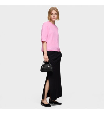 Bolso bowling pequeño TOUS Poppy de poliuretano en color negro. Cierre de cremallera. Asas fijas de mano y asa bandolera ajustable y desmontable. Medidas (alto x ancho x fondo): 13,2 x 20 x 8 cm.. Ref...