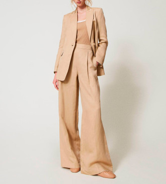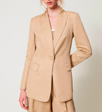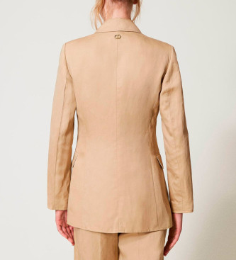 Twinset para mujer. 251TE2140 Chaqueta de botonadura sencilla de lino mixto beige