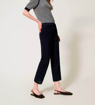 Twinset para mujer. 251TP2042 Pantalón recto con bordados marino