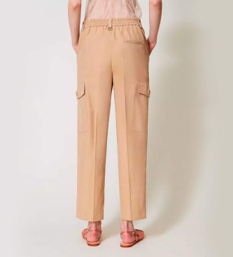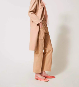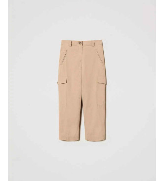 Twinset para mujer. 251TP2212 Pantalón cargo de gabardina de mezcla de algodón beige