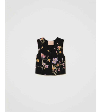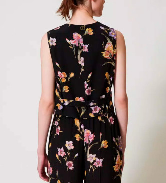 Twinset para mujer. 251TP2777 Chaleco de crepé de China con flores negro