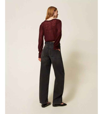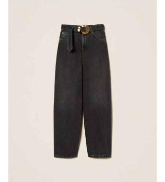 Twinset para mujer. 252TP2571 Vaqueros negros con cinturón y maxihebilla negro