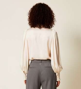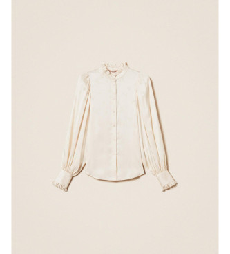 Twinset para mujer. 252TT2362 Camisa de raso de jacquard con volantes blanco roto