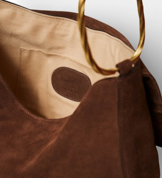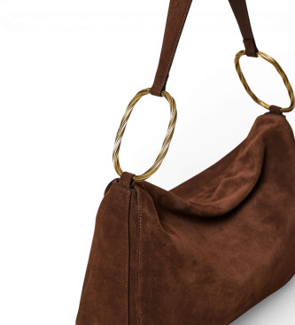 Bolso Liliane grande fabricado en Italia en piel de ante con anillos ovalados galvanizados en color latón con acabado torchón. Presenta cierre con solapa e imán, asa de hombro con parte inferior de pi...