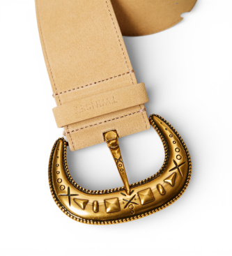 Cinturón fabricado en Italia de talle normal de ante con maxihebilla de metal con decoraciones y logotipo estampado en caliente en la presilla. . Ref.: 261TO5400, Color: Beige, Estilo: Casual, Mate...
