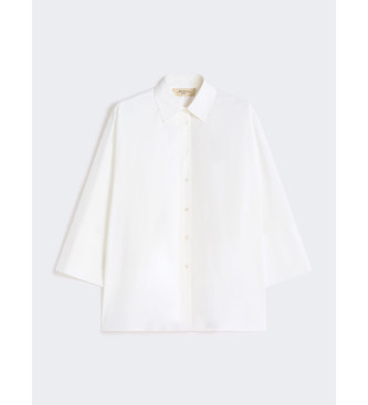 Camisa holgada con mangas kimono 3/4. Ajuste ancho Camisa de popelina de algodón puro Cuello de camisa Manga amplia con puño ancho y botón Cierre delantero con botones de nácar Bajo recto. Ref.: 261...