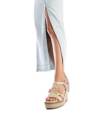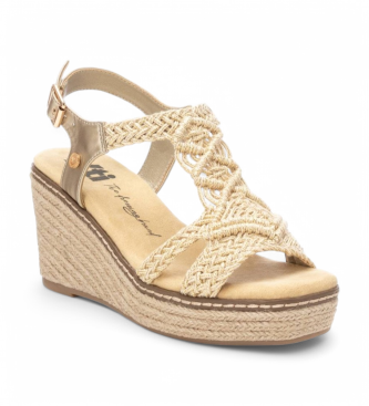 Sandalia de mujer con cuña, de la marca Xti. Diseño de nudos de macramé combinado con material que imita la piel con acabado metalizado. Cierre con hebilla metálica para facilitar el ajuste. Cuña de 1...