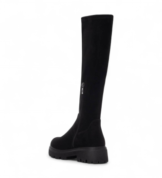 Descubre las elegantes botas negras para mujer de la colección Xti, modelo 144393. Confeccionadas en suave antelina, estas botas planas ofrecen máxima comodidad gracias a su suela gruesa antideslizant...