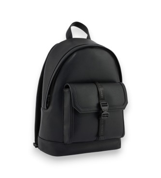 Mochila negra pensada para el hombre que une una presencia contemporánea con detalles refinados. Confeccionada en piel sintética granulada con efecto Palmellato ?un acabado que aporta textura y caráct...