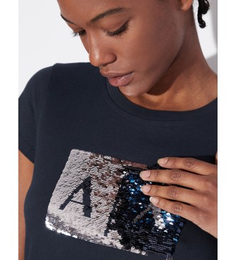 Camiseta de manga corta Lentejuelas Logotipo Color sólido con apliques. Cuello redondo Mangas cortas. La camiseta de manga corta con cuello redondo de Armani Exchange es una prenda esencial que combin...