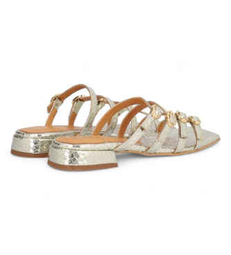 Sandalia para mujer ALPE SAINT TROPEZ, fabricada en piel (daikiri) de color platino con tacón de 2 cm, suela antideslizante y puntera cuadrada, con cierre mediante hebilla. Composición exterior: Piel....