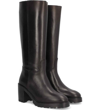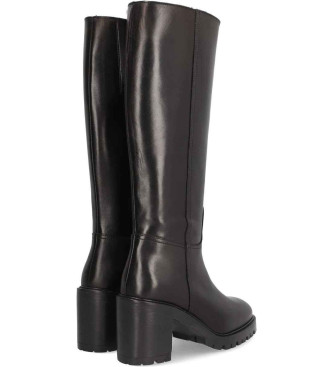 Bota para mujer ALPE VALLEY, fabricada en piel (ball lux) de color negro con tacón de 8 cm, suela antideslizante y puntera redonda, con cierre mediante cremallera y caña alta. Composición exterior: Pi...