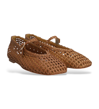 Bailarina plana estilo Mary Jane en piel trenzada color camel, donde la artesanía y la tendencia se fusionan en un diseño calado de gran personalidad. Su textura entretejida aporta ligereza y ventilac...