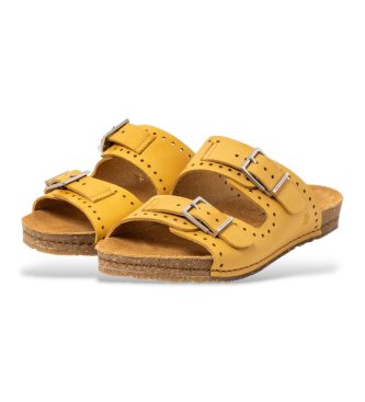 Diseñadas para mujer, estas sandalias en amarillo están confeccionadas en piel bovina y pensadas para ofrecer confort y durabilidad. La suela combina caucho natural y corcho reciclado para una amortig...