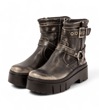 Descubre estos elegantes botines en negro, diseñados para ofrecer confort en cada paso. Confeccionados en piel bovina, cuentan con una plataforma de 60 mm que eleva tu estilo. Su forro de microfibra y...