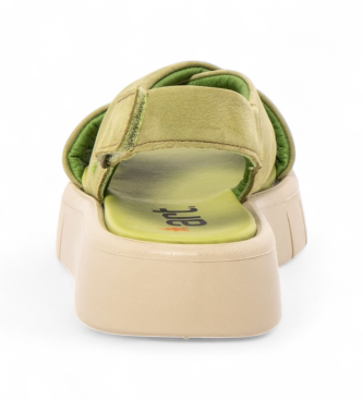 Sandalias de mujer de corte contemporáneo en color verde, confeccionadas con material exterior en piel bovina y forro en microfibra. Diseñadas para ofrecer confort desde el primer uso gracias a su hor...