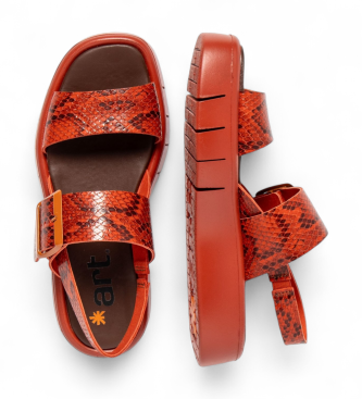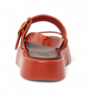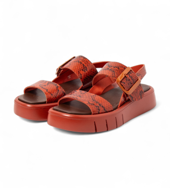 Sandalias de mujer 1857 Snake en color naranja, confeccionadas en piel bovina con estampado efecto snake que aporta textura y carácter. Su construcción montado y la horma comfort aseguran un calce cóm...
