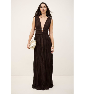 - Vestido largo - Cuello de pico - Joya metálica - Corte en la cintura - Cierre lateral con cremallera invisible Este modelo contiene fibras sintéticas recicladas. . Ref.: 1E26TANI, Color: Marrón, Es...