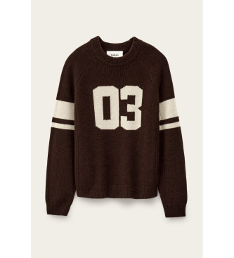 Jersey Cobe para mujer en color chocolate. - Cuello redondo - Bordado en contraste número 03 - 100% Cashmere. Ref.: 1H25COBE, Color: Marrón, Estilo: Casual, Material: Cachemir