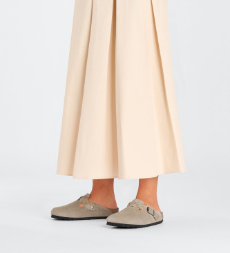 Birkenstock para mujer. 1026694 Zuecos de Piel Boston Braided taupe