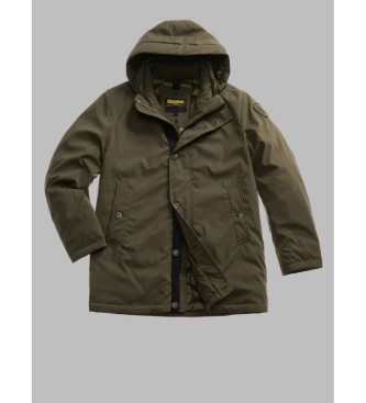 Parka largo en neopreno liso hidrorrepelente con cuello alto extraíble mediante cremallera. Relleno natural cálido pero no voluminoso. Prenda icónica Blauer de inspiración militar. • Capucha extraíble...