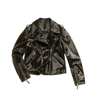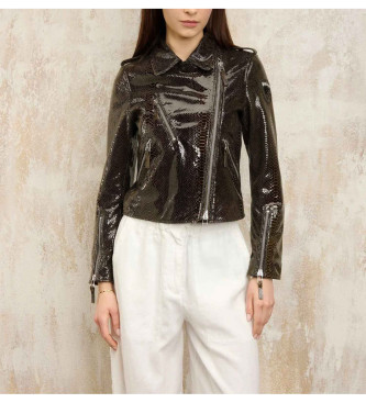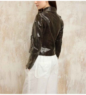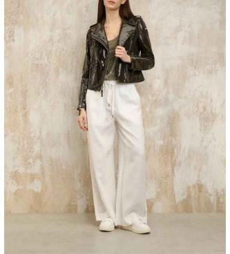 Chaqueta de cuero tratada con efecto vintage. Prenda ideal para realzar la figura, ideal para combinar con jeans o pantalones a tono para un look decidido y elegante • Cuello de doble solapa • Cierre ...