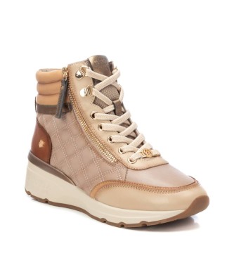 Botín deportivo de mujer, de la marca Carmela. Fabricada en piel de alta calidad. Cierre mediante cremallera lateral y cordones ajustables. Cómoda cuña de 4 cm con suela de goma antideslizante. Con pl...