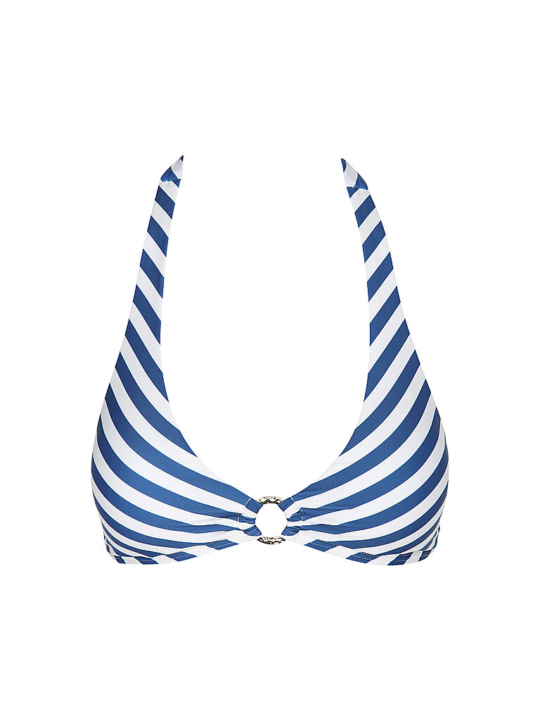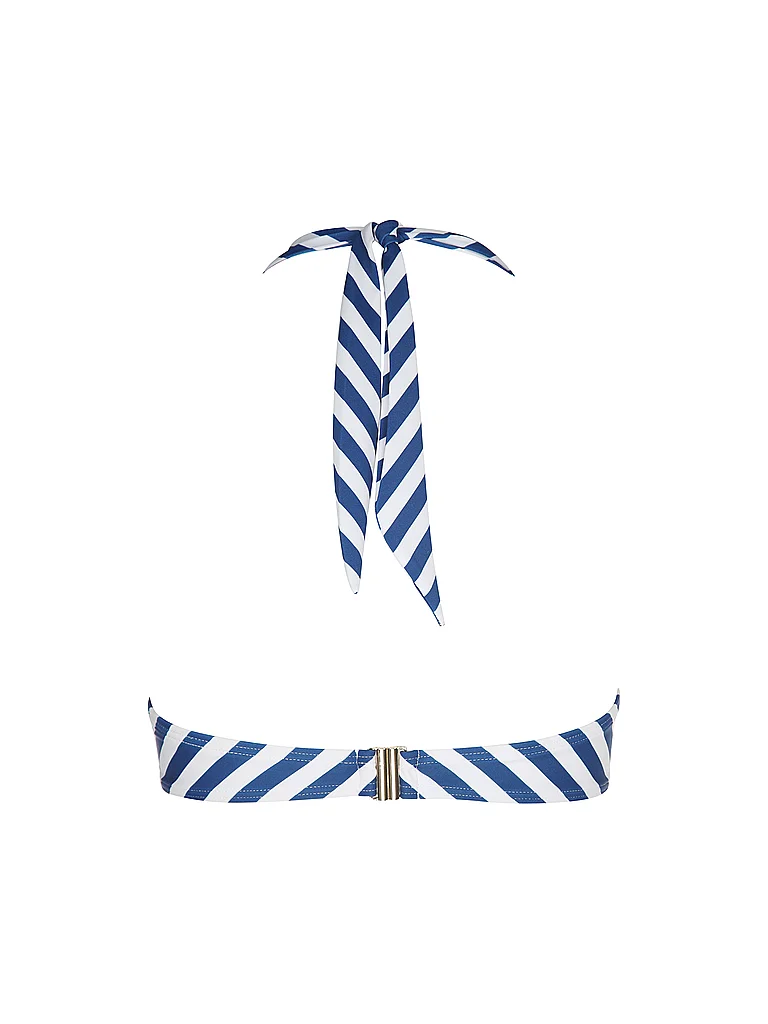Bikinioberteil de mujer Halter con lazos Se cierra con cierre de gancho Anillo decorativo en el escote Material: 80% poliamida reciclada, 20% elastano Nombre del color: Azul blanco