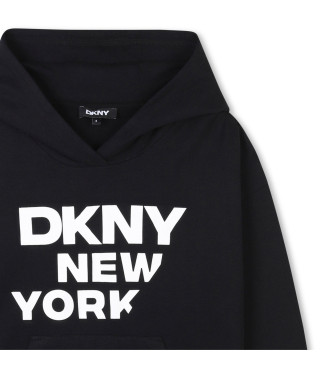 DKNY unisex para niños. D62248 Sudadera con logo estampado negro