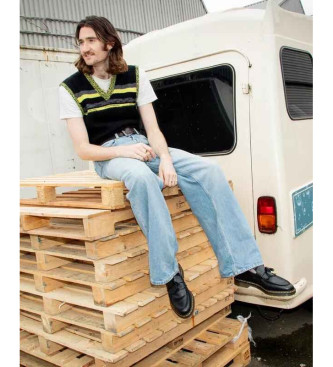 Dr Martens para mujer. 22209001 Mocasines de piel Adrian Yellow Stitch negro