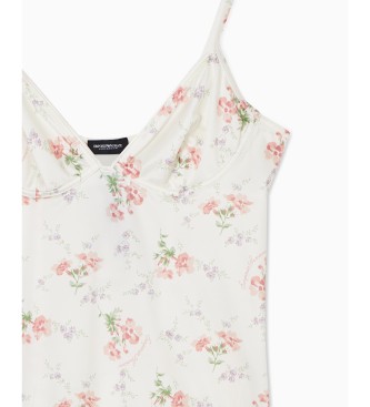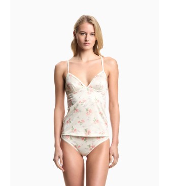Top de micro satén en blanco con estampado floral, confeccionado para mujer. Tejido principal: micro satin (74% poliamida, 26% elastano). Los tirantes son elásticos (80% poliamida, 20% elastano). Colo...