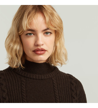 G-Star para mujer. D27730-D770-A926 Jersye Cable double collar marrón (S), Casual, Lana, Clásico, Manga larga