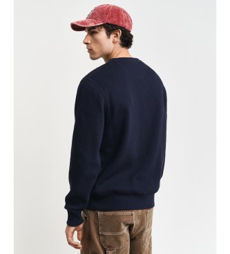 Gant para hombre. 2015080 Sudadera De Cuello Redondo Con Textura De Nido De Abeja marino (L), Casual, Algodón