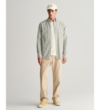 Gant para hombre. 3240060 Camisa Regular Fit de lino y algodón a rayas verde (M), Casual, Manga larga