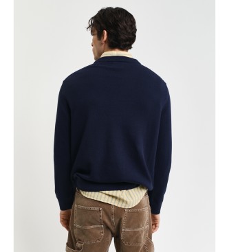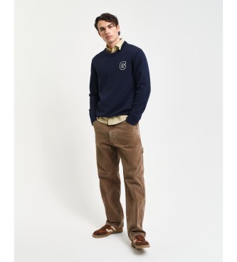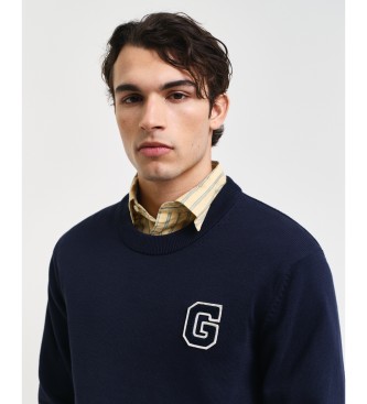 Gant para hombre. 8030221 Jersey de cuello redondo con insignia marino (L), Casual, Algodón