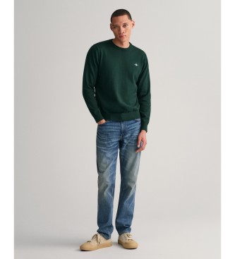 Gant para hombre. 8030561 Jersey de cuello redondo clásico verde (S), Casual, Algodón, Manga larga