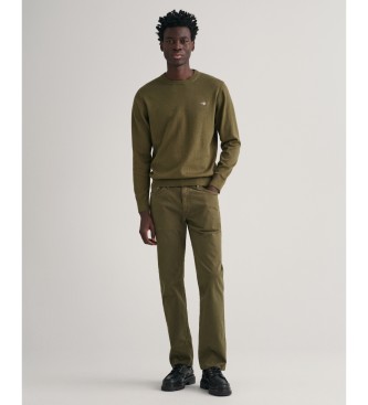 Gant para hombre. 8030561 Jersey de cuello redondo de algodón clásico verde (S), Casual, Manga larga