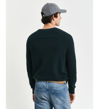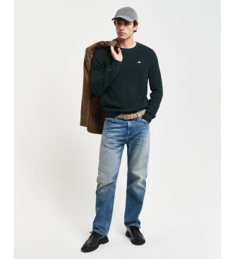Gant para hombre. 8050211 Jersey de cuello redondo de lana y algodón acanalado verde (S), Casual