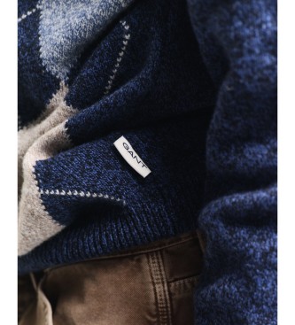 Gant para hombre. 8060094 Jersey de cuello redondo Argyle azul (XL), Casual, Lana