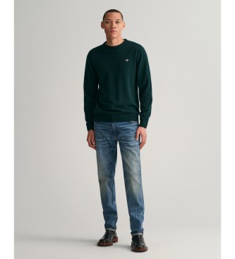 Gant para hombre. 87211 Jersey de cuello redondo en lana de oveja muy fina verde