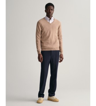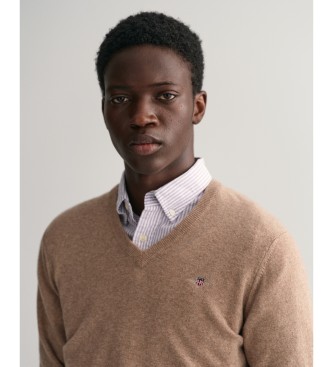 Gant para hombre. 87212 Jersey de cuello de pico en lana de oveja muy fina beige (XXL), Casual