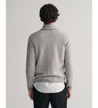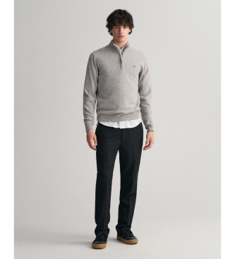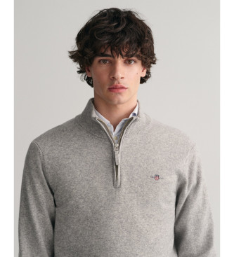 Gant para hombre. 87213 Jersey de lana de oveja muy fina con media cremallera gris (XL), Casual