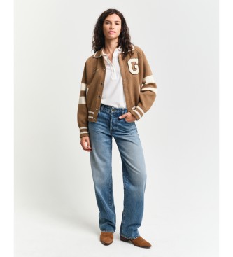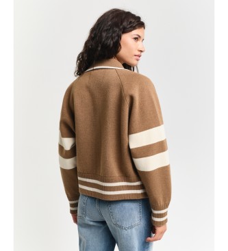 Gant para mujer. 4805301 Chaqueta Varsity de punto marrón (L), Casual, Algodón