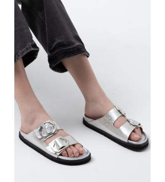 Sandalia metalizada plata con planta anatómica. Ajustable con nuestra exclusiva hebilla GENUINS. Vegano, PETA vegan approved. Diseñado y fabricado en nuestras fábricas de Elche, bajo una producción so...