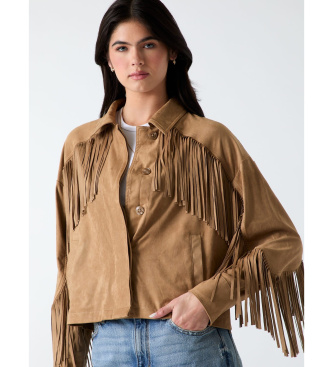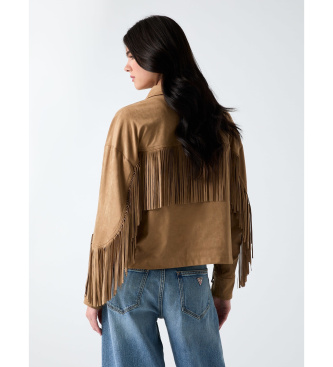 Guess para mujer. W6GL45W2466 Chaqueta corta con flecos marrón (XS/S), Casual, Poliéster