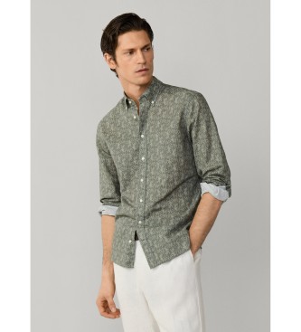 Hackett London para hombre. HM3010613 Camisa Tiger Print verde (M), Casual, Algodón, Manga larga