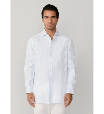 Hackett London para hombre. HM3010634 Camisa de lino Summer Stripe azul (S), Algodón, Clásico, Manga larga
