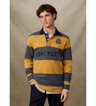Hackett London para hombre. HM5700004 Polo Heritage Crest Stripe amarillo (XL), Casual, Algodón, Manga larga