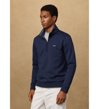 Hackett London para hombre. HM5800090 Sudadera cuarto de cremallera con logo mairno (L), Casual, Algodón, Marino
