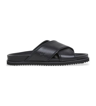 Hackett London para hombre. HMS21474 Sandalias de piel Mikonos Crossover negro